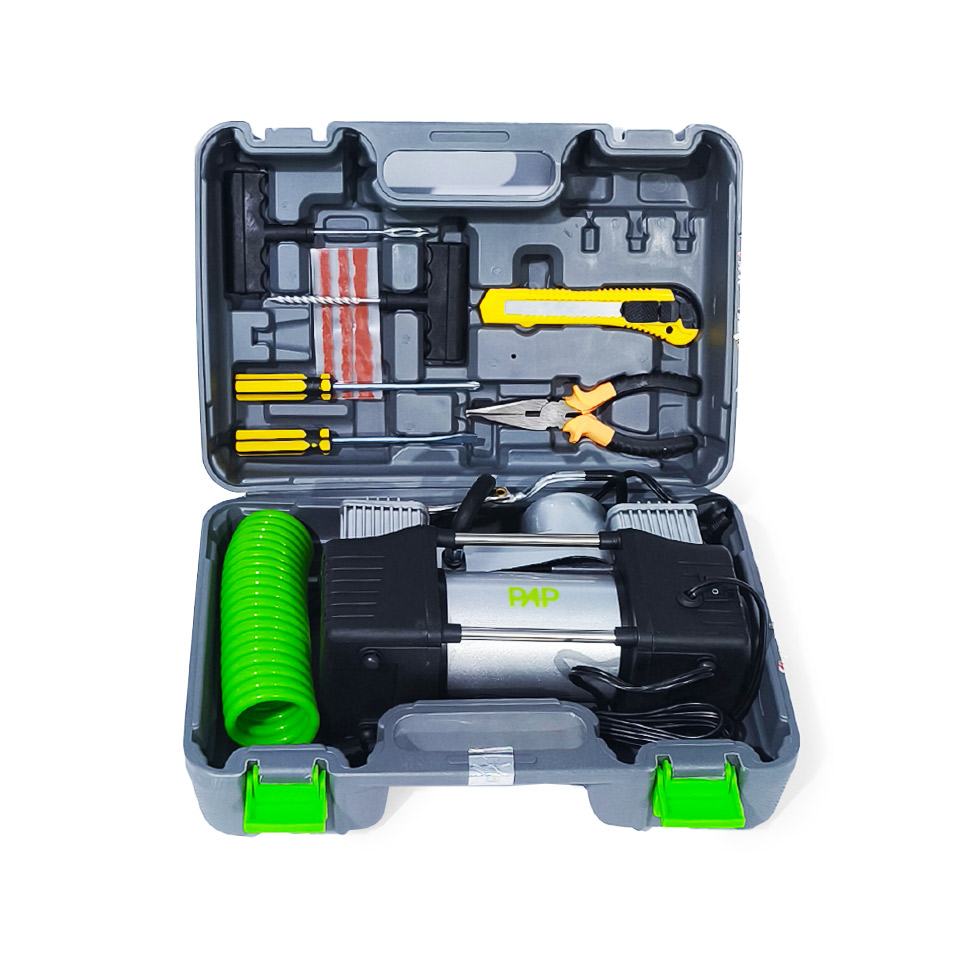 مشخصات پمپ باد فندکی دوسيلندر آداپتور دار و برق 150بار پی ای پی مدل AC1502 کد 100251